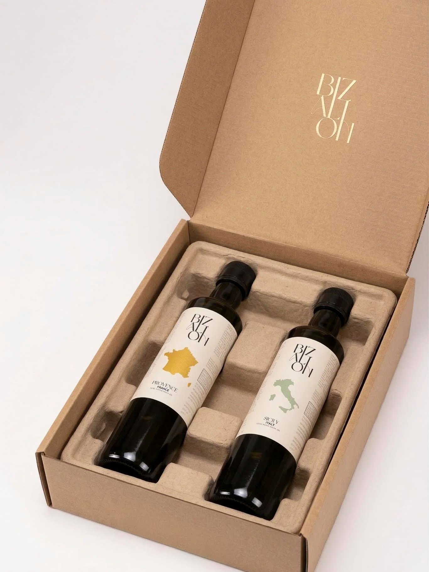 Over the course of twelve months you will receive six deliveries and a total of twelve bottles. The selection rotates throughout the year and may include oils from regions such as Provence, Sicily, Catalunya, Attica, and Alentejo.